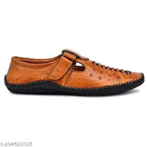 Men’s Brown Perforated Kantar Sandal | Stylish Comfortable Casual Daily Wear Sandals | Durable Office Wear Sandal for Men